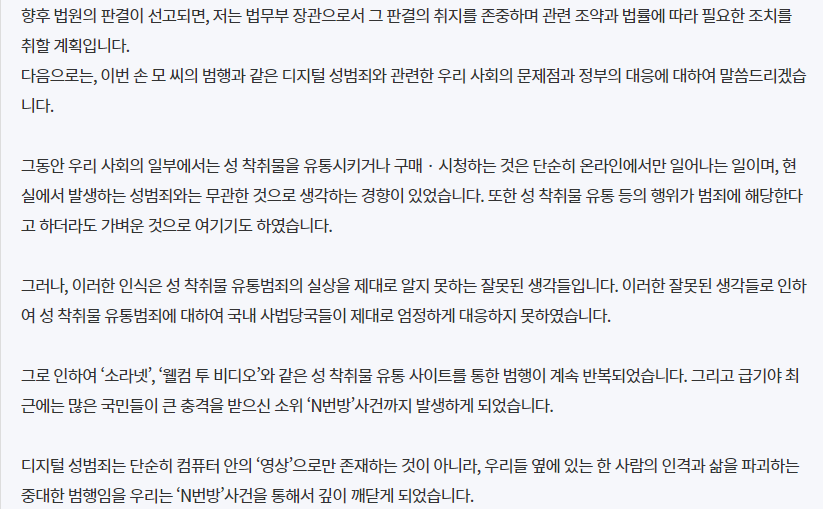 손정우는 한국에서 다시 처벌 받을 수 있다면 어떠한 중형이라도 받겠다고 미국 송환을 막아달라고 호소한 바 있습니다.