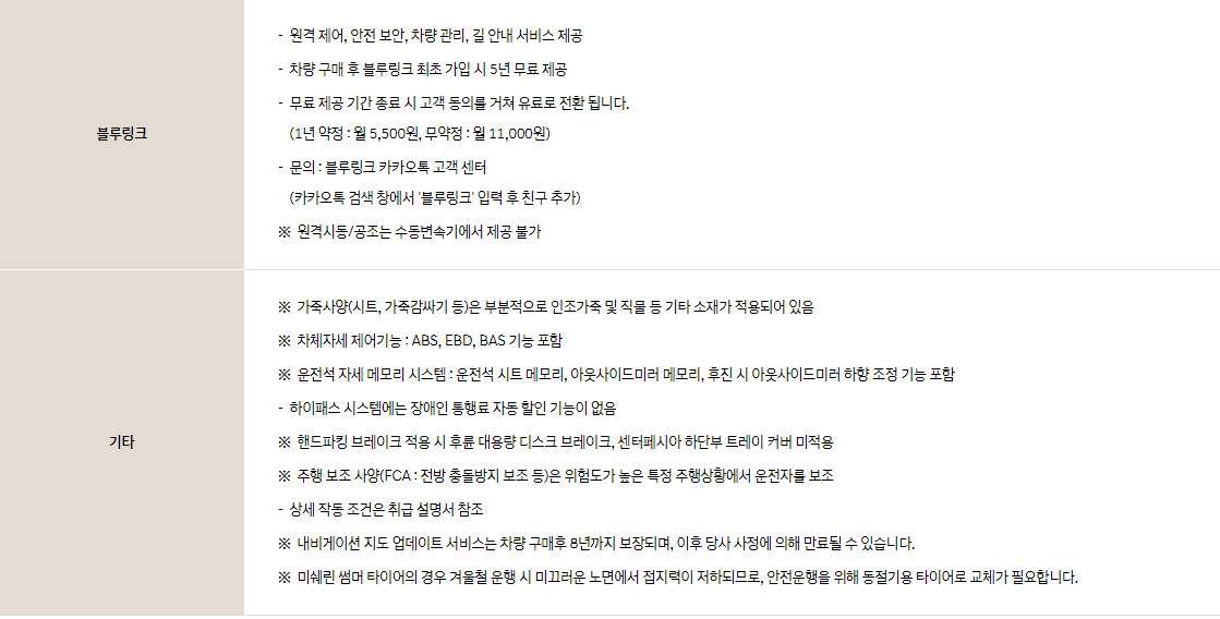 - 내비게이션 지도 업데이트 서비스는 차량 구매 후 8년까지 보장되며, 이후 당사 사정에 의해 만료될 수 있습니다.