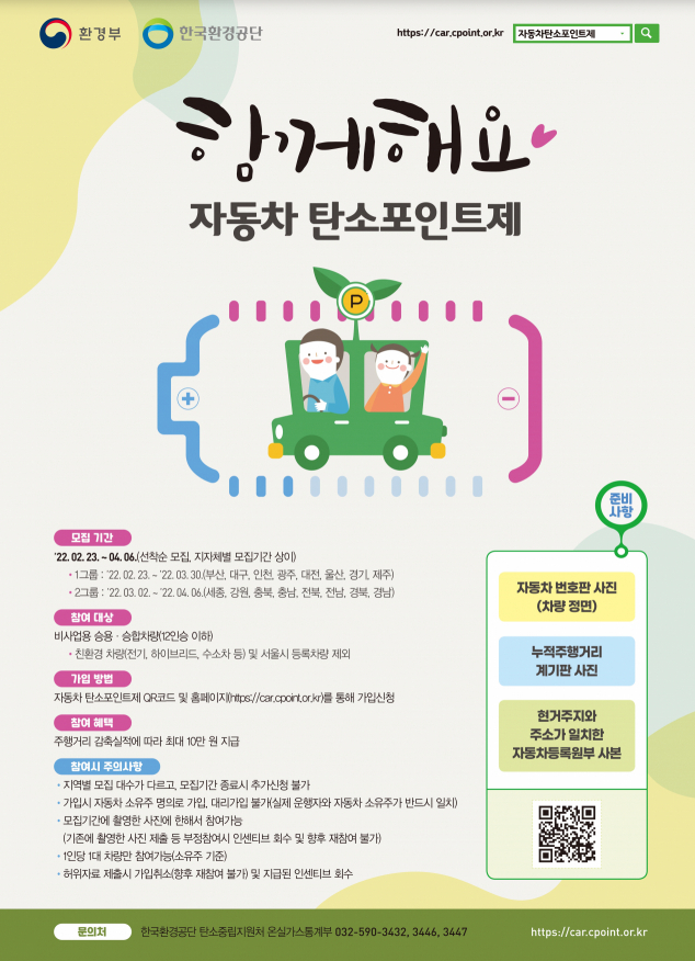 자동차 탄소포인트제에 희망하는 사람은 자동차 탄소포인트제 사이트 https://car.cpoint.or.kr 에서 참여 신청을 할 수 있습니다.