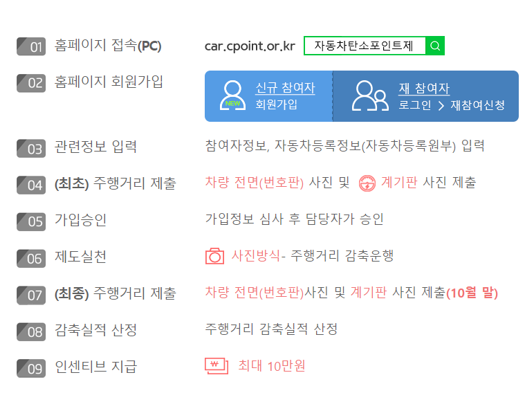자동차 탄소포인트제란? 종전 주행거리와 비교하여 주행거리 단축 실적에 따라 혜택을 지급하여 온실가스를 줄이는 제도입니다.