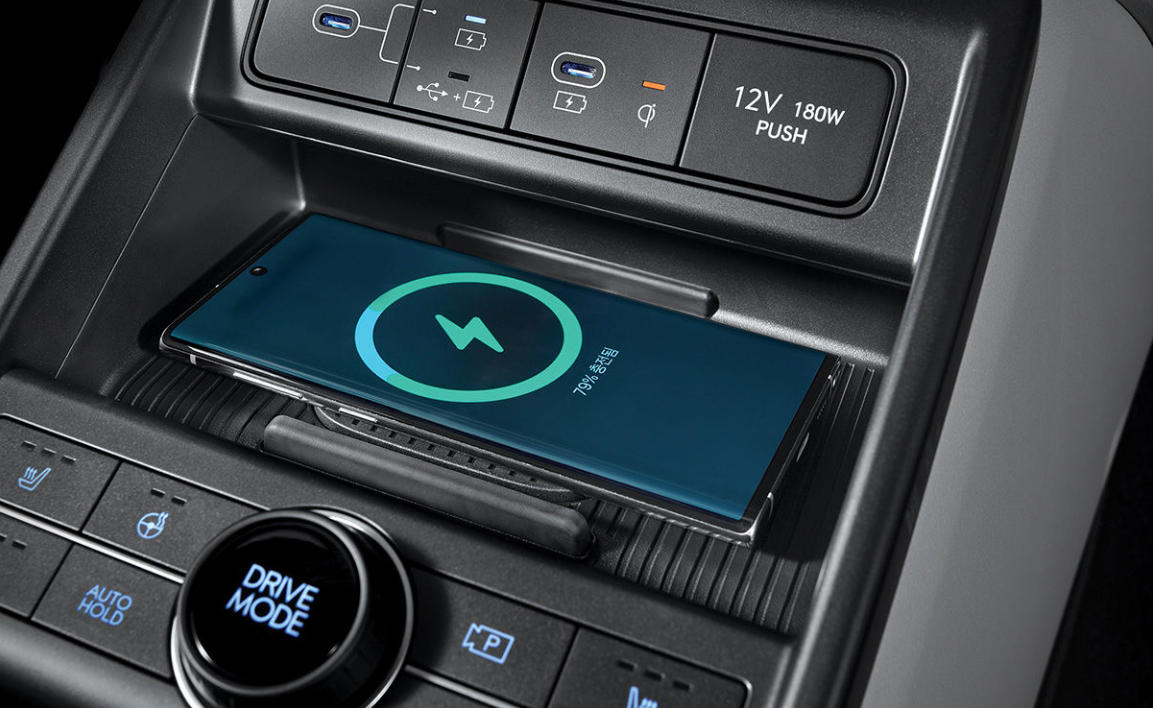 별도의 케이블 없이 무선으로 고속 충전이 가능하며 하차 시 휴대폰 방치 알림 기능으로 편의성을 향상시켰습니다.