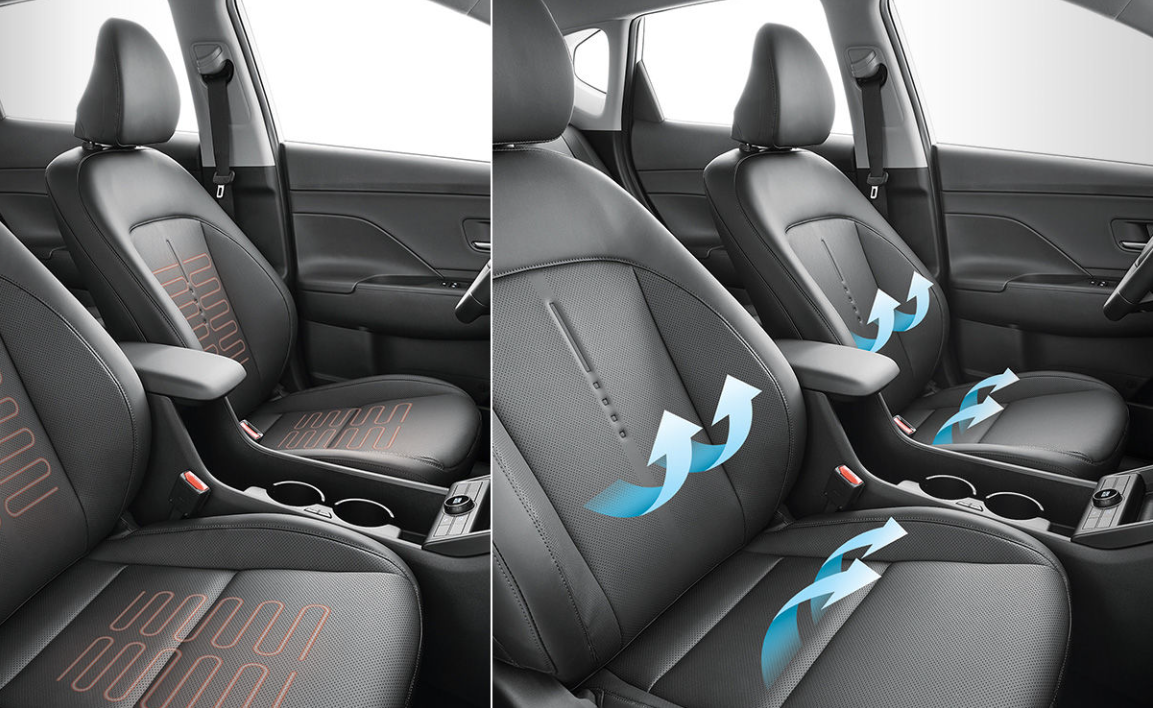 시동이 걸린 상태에서 해당 좌석 통풍 버튼 (파란색)을 누르면 해당 표시등이 켜지면서 해당 좌석에서 바람이 나옵니다.